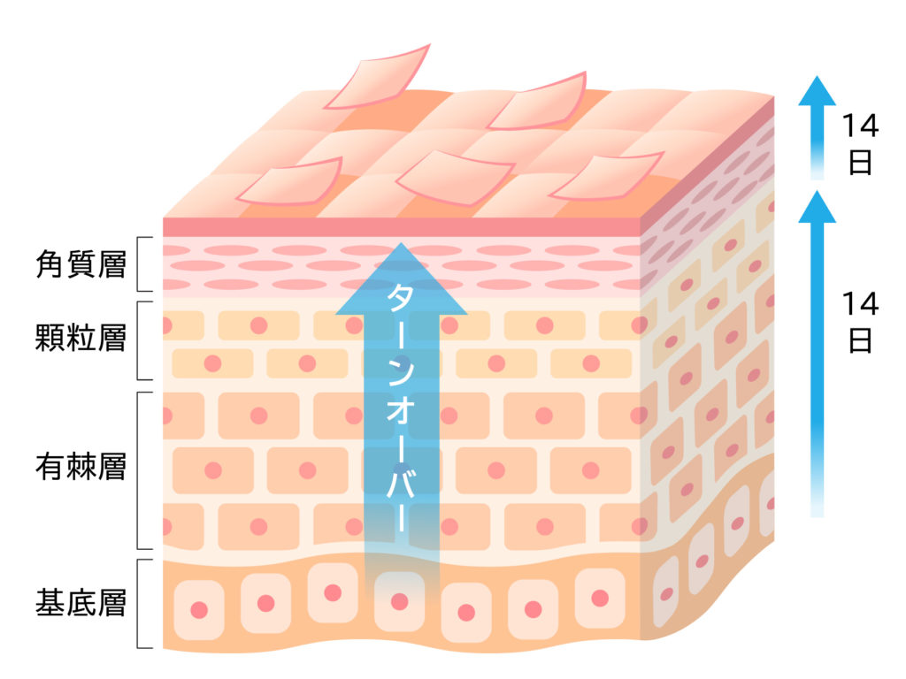 肌の場合はターンオーバーという周期で皮膚が生まれ変わっていきますが、