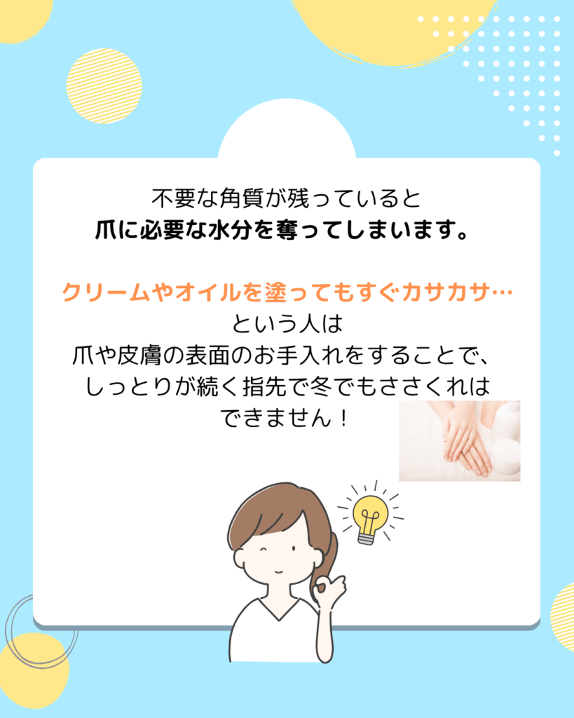 ◎爪「だけ」ではなく、皮膚を含めたお手入れ